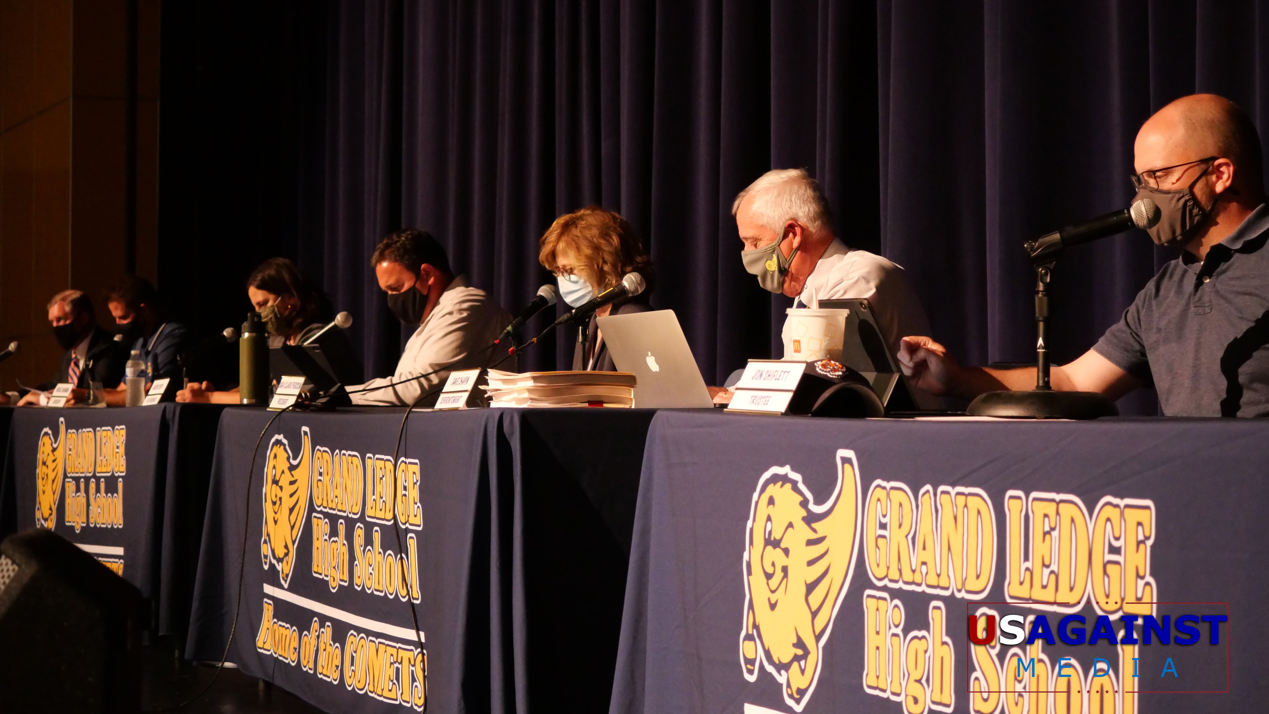 Tonight we attended the first in-person school board meeting Grand Ledge has had the entire school year. As we approached the entryway into the school, there was a table where parents had petitions ready for people to sign to recall most of their school board members. And they already have approval to recall two of them. Denise DuFort and John Shiflett.
