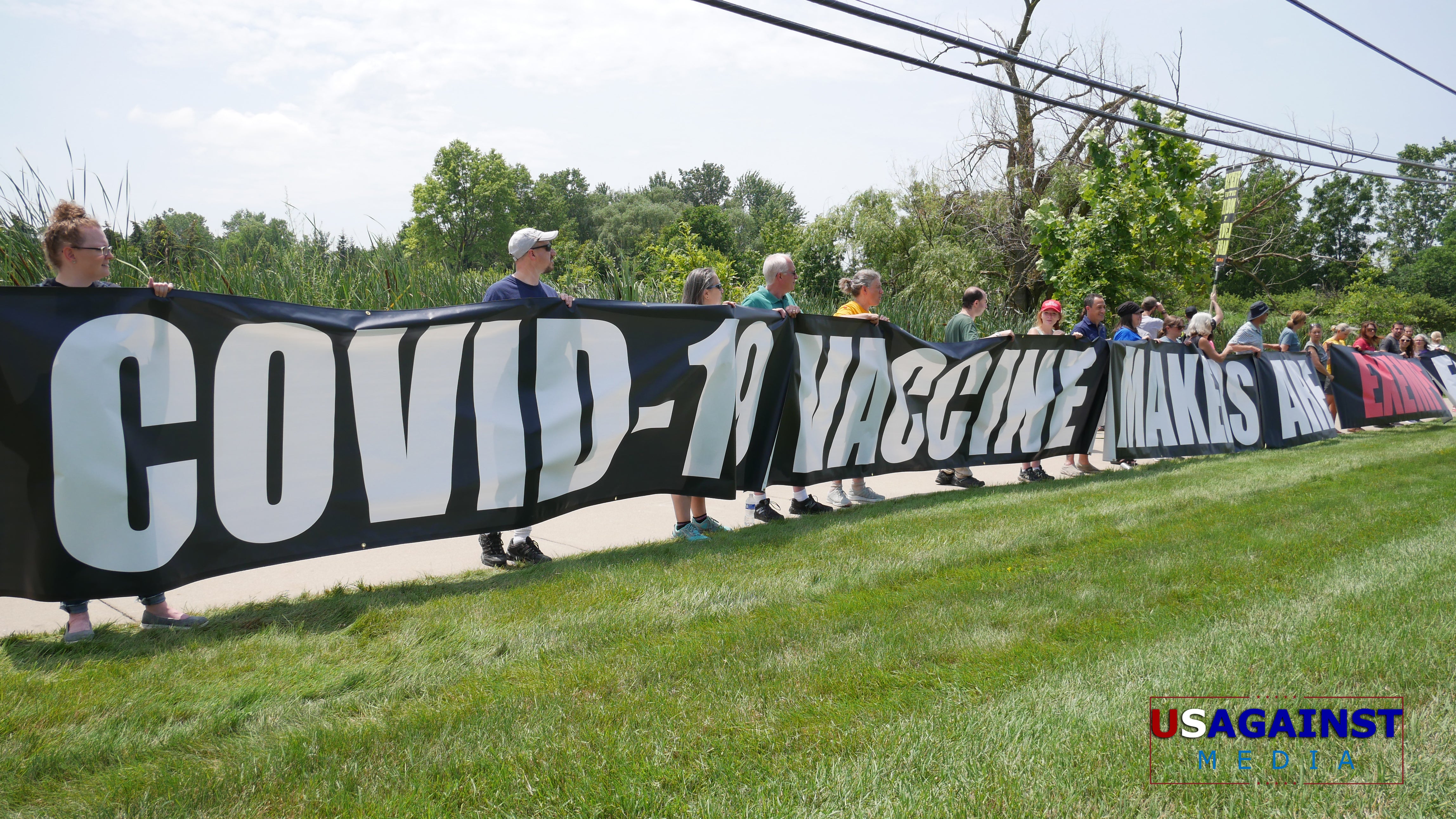 Amber Castro, organizer and a team of Michigan healthcare workers against unconstitutional mandates along with several other grassroots organizations, put today’s event together. Michigan for Vaccine Choice and volunteers provided and displayed a banner which read, “COVID-19 VACCINE MAKERS ARE EXEMPT FROM LIABILITY”