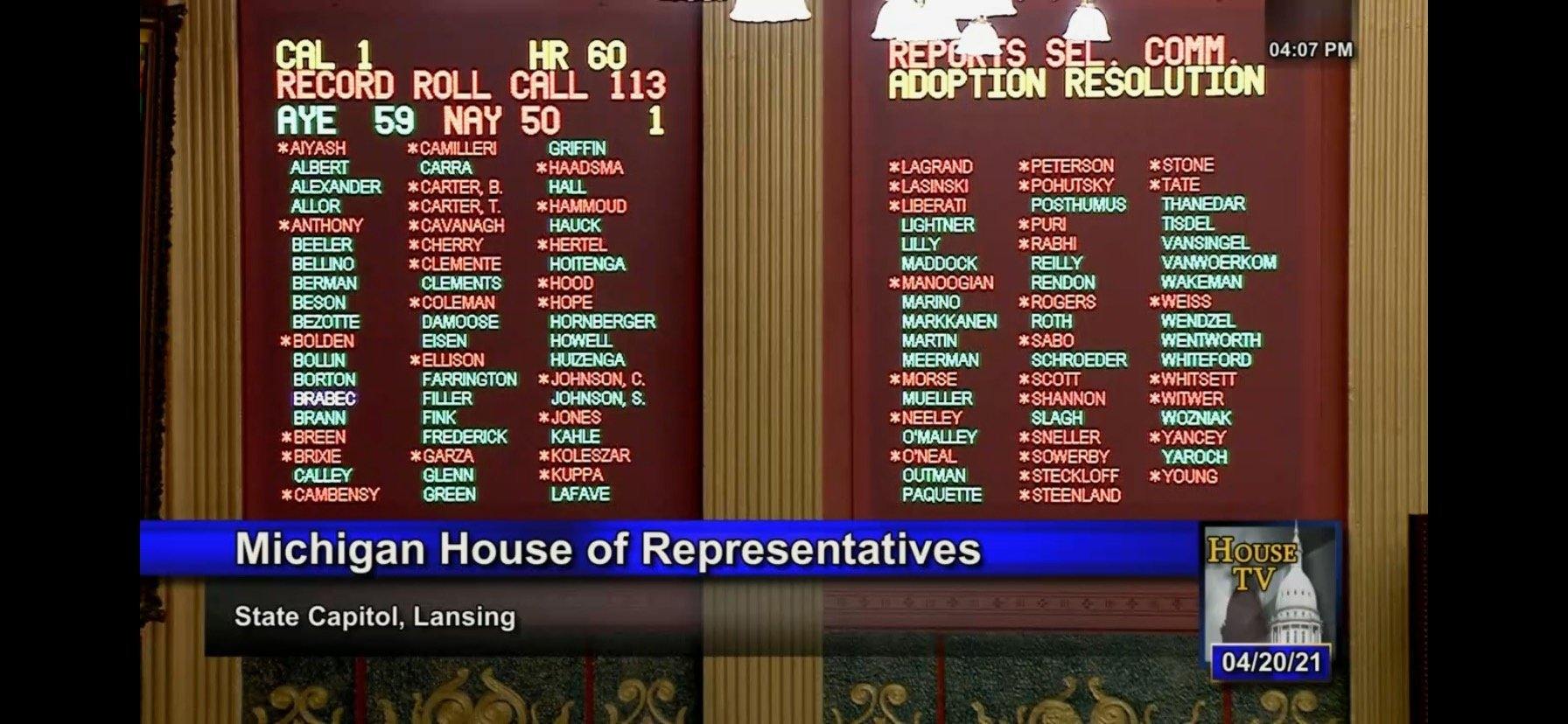 HR 60 which gives Michigan Legislation subpoena powers to further investigate the Robert Gordon payoff controversy, passed the house yesterday in a 59 – 50 decision.