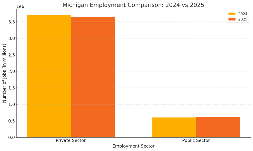 Media reports (like Craig Mauger’s from The Detroit News) combine public and private job figures to paint a more dramatic picture — inflating the impact while obscuring sector-specific trends.