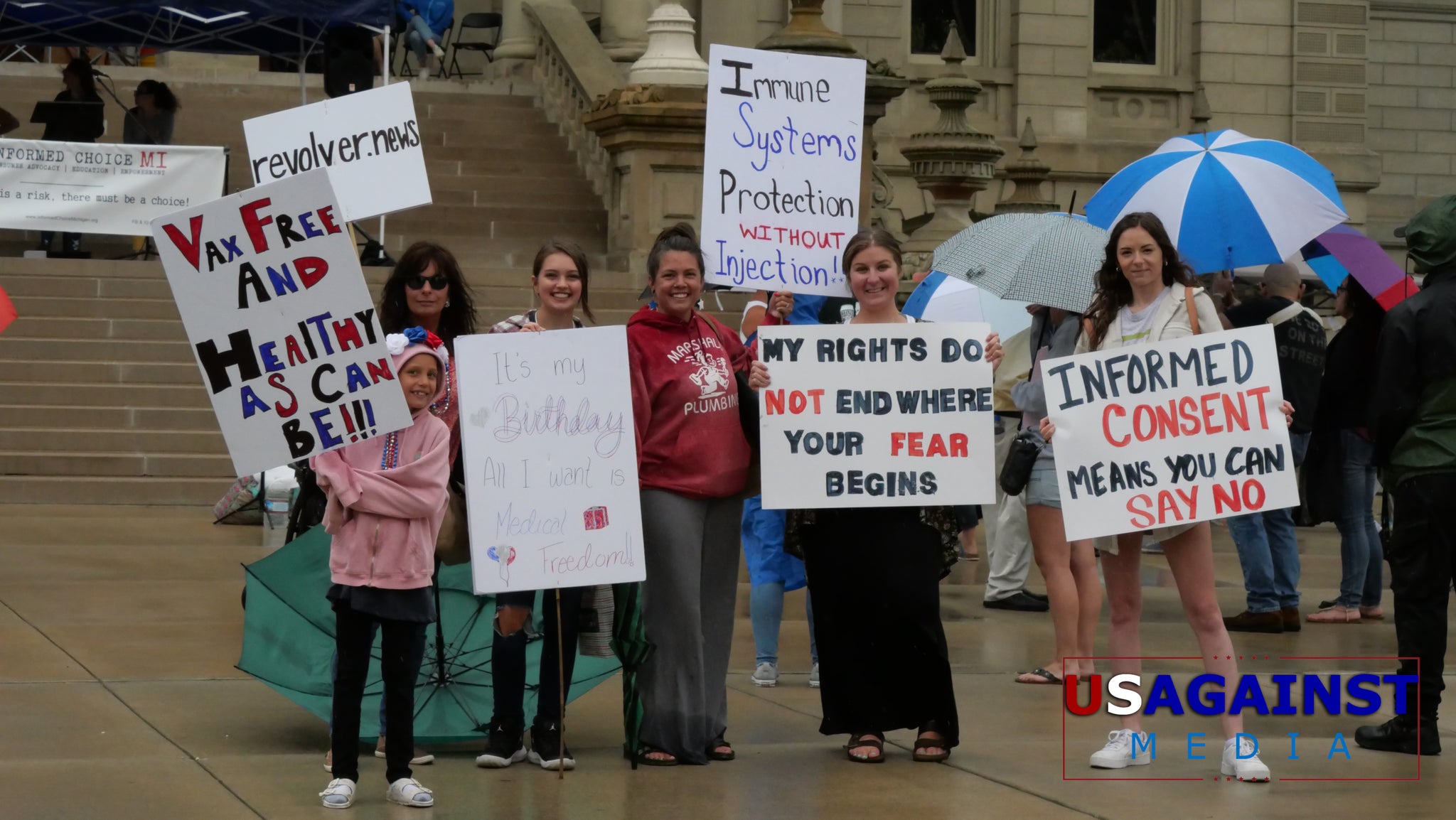 The wind. The rain. And more wind and rain. But that didn’t stop people from coming out to the Michigan State Capitol for the third annual March for Medical Freedom, put on by Informed Choice Michigan.