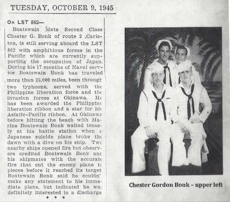 Above is an amusing story about my grandfather and his service in the Navy. He’s in the upper left of the newspaper photo.