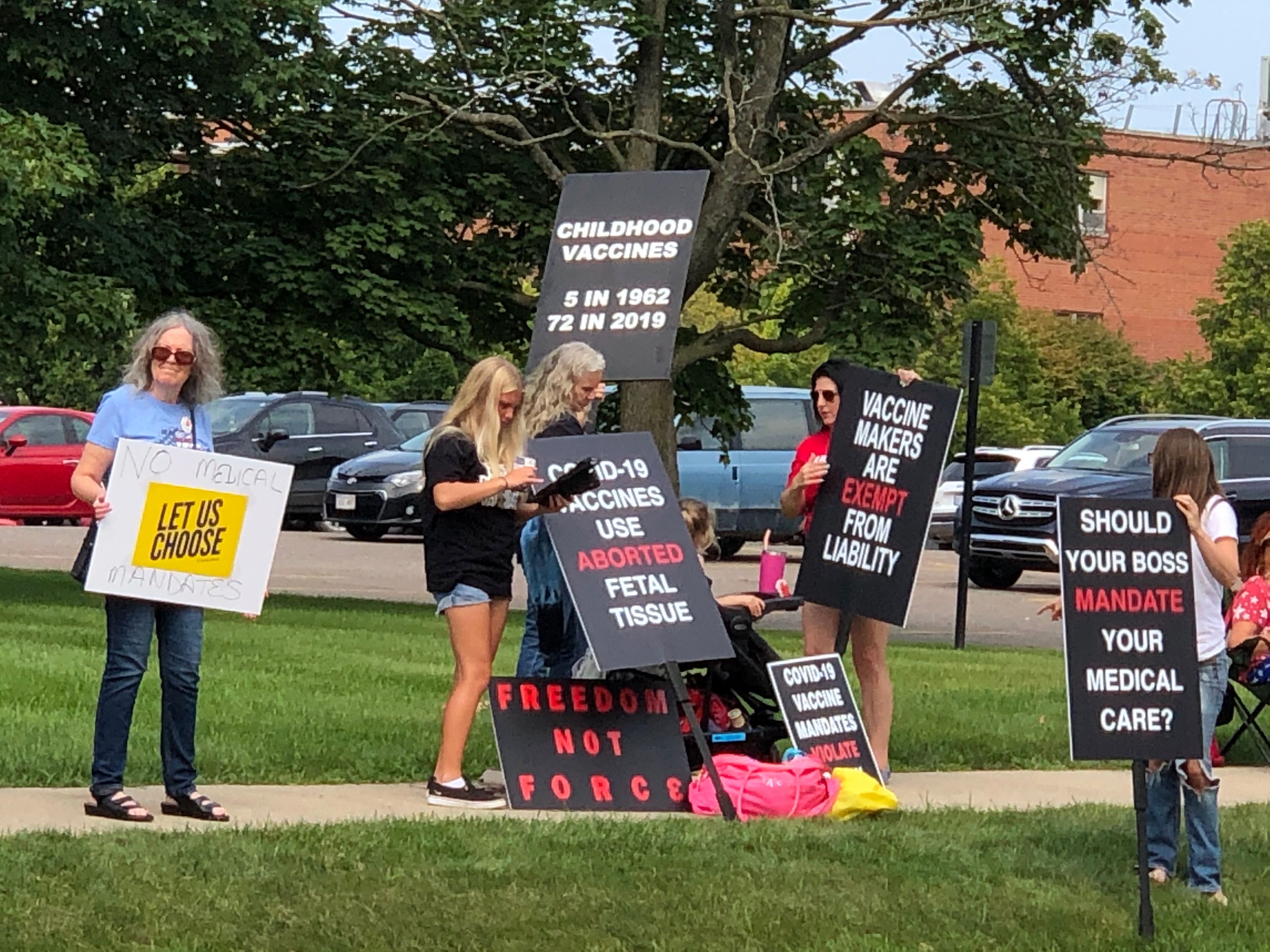 Say “NO” to the shot! Healthcare workers and supporters rally against mandatory vaccines in Howell, Michigan.